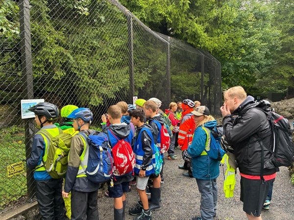 Trotz widriger Wetterbedingungen machten sich die Schülerinnen und Schüler erstmals mit dem Fahrrad auf den Weg zu ihrem ausserschulischen Lernort in den Tierpark. Anstelle des angekündigten Sonnenscheins erwartete die Gruppe kräftiger Regen. Durchnässt, aber unbeirrt erreichten sie ihr Ziel.