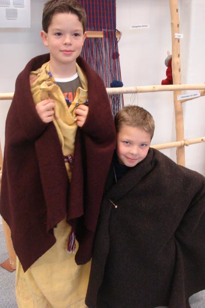 Nach dieser harten Arbeit in Jungsteinzeitmanier war das Mittagessen wohlverdient, das allerdings neuzeitlich an Tischen und auf Stühlen genossen wurde und zum Glück nicht noch erst gesammelt oder gejagt werden musste…- Am Nachmittag befassten wir uns mit dem Thema Kleider. Zu allen Zeiten bekamen wir Kleider, die die Kinder anprobieren durften und die auch in einer kurzen Szene den Kameraden vorgestellt wurden. Nach dieser steinzeitlichen Modeschau hiess es, sich wieder auf den Heimweg zu machen.