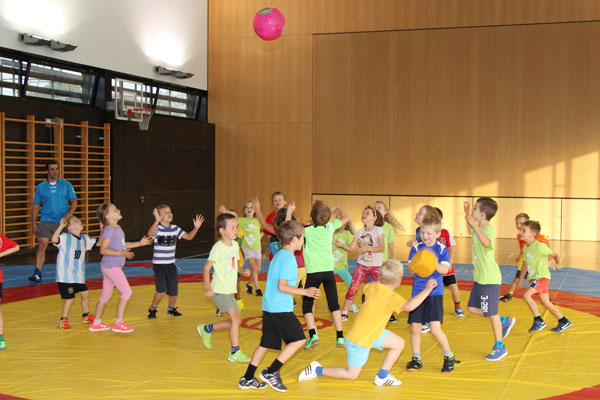 Zuerst wurde der ganze Körper mit verschiedenen Übungen aufgewärmt. Unter fachkundiger Anleitung konnten die Schülerinnen und Schüler nachher verschiedene Griffe und Tricks üben und ausprobieren. Dabei durfte sich der Gegner nicht wehren, damit die Griffe auch wirklich geübt werden konnten. Die Wettkampflust der Kinder konnte am Ende natürlich auch noch gestillt werden. Mann gegen Mann bzw. Frau gegen Frau oder gar Frau gegen Mann wagten sich die Kinder in die Mitte und kämpften unter den Anfeuerungsrufen der anderen ehrgeizig und gaben vollsten Einsatz. Zum Schluss zeigten zwei Ringer noch einige richtig schwierige Schwünge vor und beeindruckten damit alle sichtlich.