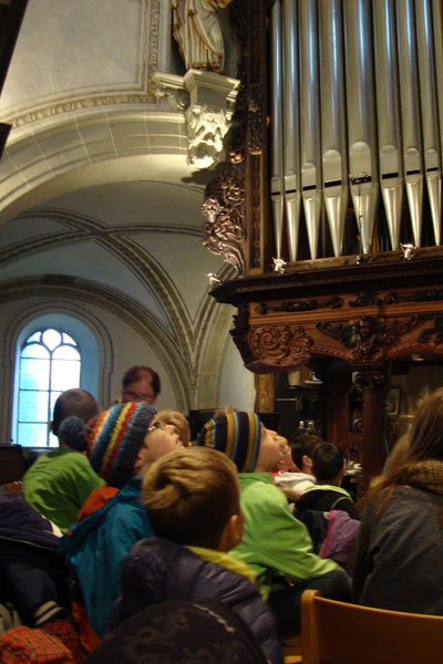 Wir durften das musikalische Märchen „Peter und der Wolf“ von Sergej Prokofjew auf ganz besondere Weise erleben.Auf der Empore der Hofkirche Luzern spielte uns der Organist Wolfgang Sieber live auf der grossen Orgel die Musik zur Geschichte, die von Michèlle Schönbächler erzählt wurde.