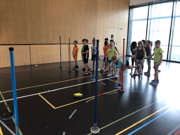 Dennoch, die Kinder lauschten geduldig und auch interessiert dem kurzen Theorieteil und den Anweisungen von Patricia Zimmermann und Gerrj Spiess beide aus Weggis sowie Renato Bianchi aus Lauerz. Nach kurzer Zeit der Einführung ging‘s los – die Kinder hatten keine Berührungsängste, getrauten sich an die gestellten Aufgaben bei den diversen Posten. Sie liessen sich Tipps geben und erfreuten sich an gelungenen «Schüssen». Höhepunkt war gewiss immer der Wettkampf, zwischen den Mannschaften. Eine gelungene Bereicherung des Sportunterrichts.