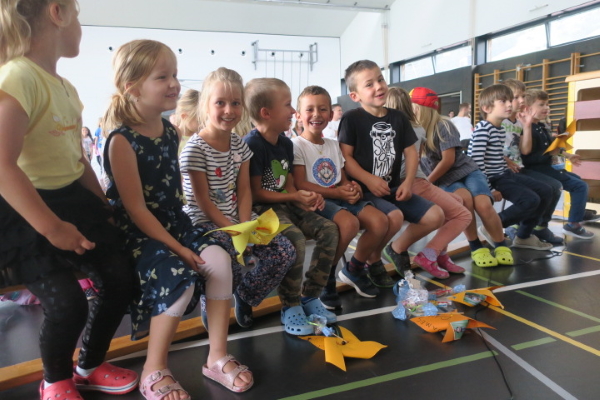 Doch diesmal galt: Abstand halten und eine eingeschränkte Teilnehmerzahl. Wie jedes Jahr trafen sich die Schulkinder aus Lauerz am letzten Tag vor den langen Sommerferien in der Turnhalle und verabschiedeten gemeinsam die Schülerinnen und Schüler der 6. Klasse. Noch einmal sahen wir die Kinder auf verschiedenen Fotos, welche sie vom Kindergarten bis in die Mittelstufe zeigten. Dies führte zu einigem Schmunzeln in den Zuschauerreihen. Die 6. Klasse beschenkte die Schule dann mit einer selbst hergestellten Holzliege, welche einen Platz auf dem Pausenplatz finden wird. Zudem wurden alle Anwesenden mit einem gesanglichen Leckerbissen verwöhnt. Michi trug den Song: „Rolling in the Deep“ von Adele vor. Begleitet wurde er von seinem Lehrer Herr Kluser mit der Gitarre und von seinem Mitschüler Morris auf dem Cajón. Alle Anwesenden genossen die Darbietung und schenkten am Schluss einen tosenden Applaus.