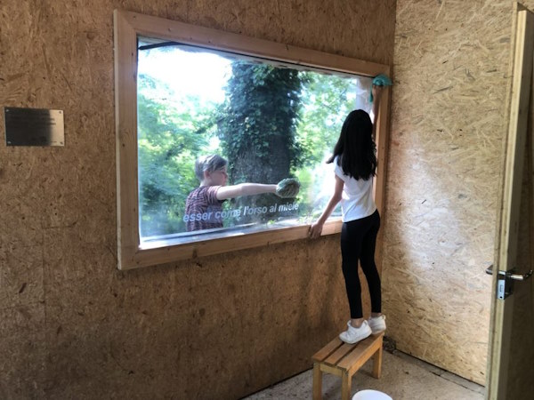 Dabei wurden unter anderem ein Waldplatz vom Unterholz befreit, Gestelle aufgebaut, Garderobenhaken angeschraubt, eine Matschküche gebaut und Fenster geputzt. Eine Gruppe startete sogar den Bau eines Waldsofas.