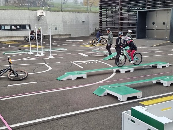 Auf einem spannenden Geschicklichkeitsparcours übten die Kinder das sichere Fahren im geschützten Raum. Vom Slalom über Hindernisse bis hin zum Schwebebalken und grosser Wippe war alles dabei. Anfangs war da und dort noch etwas Unsicherheit zu spüren, doch mit jedem Durchgang wuchs das Selbstvertrauen. Am Ende meisterten alle die kniffligen Stationen mit viel Mut und Geschick.