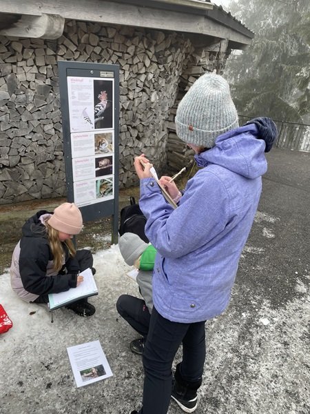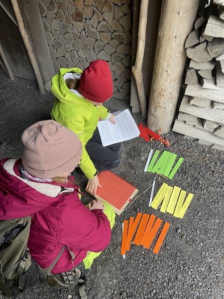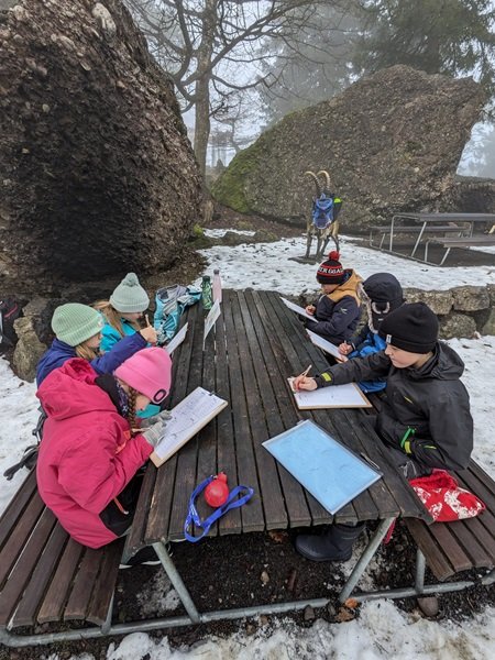 Bei winterlichem Wetter nutzten die Schülerinnen und Schüler den Tierpark als ausserschulischen Lernort. Nach der Ankunft wärmten sie sich am Feuer beim Rastplatz der Steinböcke auf und tranken warmen Punsch. In vier Gruppen arbeiteten sie engagiert an Posten zu den Themen Fabeln und Vielfalt, ordneten Texte, bestimmten Wirbeltiergruppen und stellten Tiersteckbriefe vor.