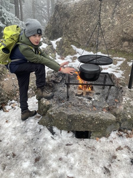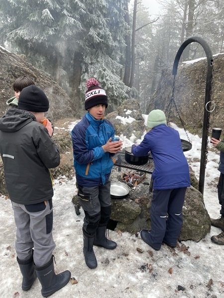 Eine Woche später vertieften sie ihr Wissen mit einem Biodiversitätsquiz und einer Stafette zur Repetition. In der Pause sorgten heisse Bouillon und das Feuer erneut für wohlige Wärme.