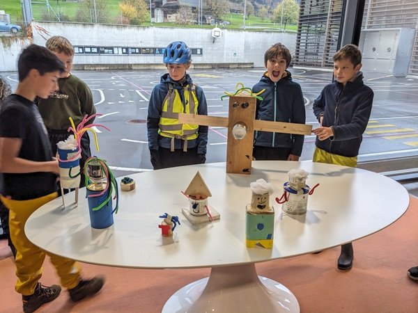 An diesem Tag blieb der Tierpark für Schulklassen wegen dem starken Wind geschlossen, doch das hielt niemanden auf. Kurzerhand verwandelte sich das Schulgelände in ein Spielfeld zum Thema Recycling. Beim selbst gebastelten «Leiterlispiel» und beim Gestalten eigener Spielfiguren aus Recyclingmaterialien lernten die Kinder viel über den sorgsamen Umgang mit der Umwelt. Wer Quizfragen richtig beantwortete, durfte auf dem Spielfeld besonders weit ziehen.