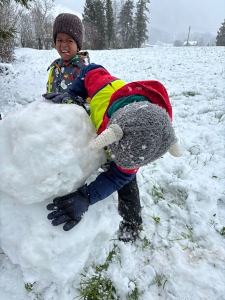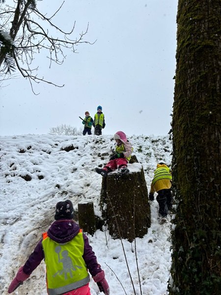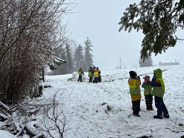 Spontan entschied die Kindergärtnerin, das Programm umzustellen. Statt Unterricht im Tierparkkindergarten ging es gemeinsam in den nahegelegenen Auliwald. Dort konnten die Kinder den Winter in vollen Zügen geniessen: Im Schnee spielen, herumtollen, und ein kleines Feuer machen. Der Kreativität waren keine Grenzen gesetzt. Als die Schulleitung dann noch Cervelats und Wienerli vorbei brache, war die Freude riesengross.