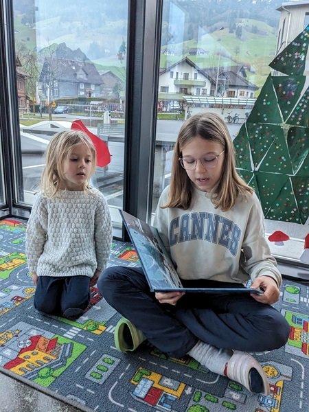 Die andere Hälfte der Kinder blieb zunächst im Schulhaus. Dort durften die Kindergartenkinder ihrem Schulgotti oder Schulgötti beim Vorlesen einer Geschichte zuhören. Anschliessend wurden gemeinsam Spiele auf dem Pausenplatz gespielt. Nach der Pause wechselten die Gruppen ihre Standorte.